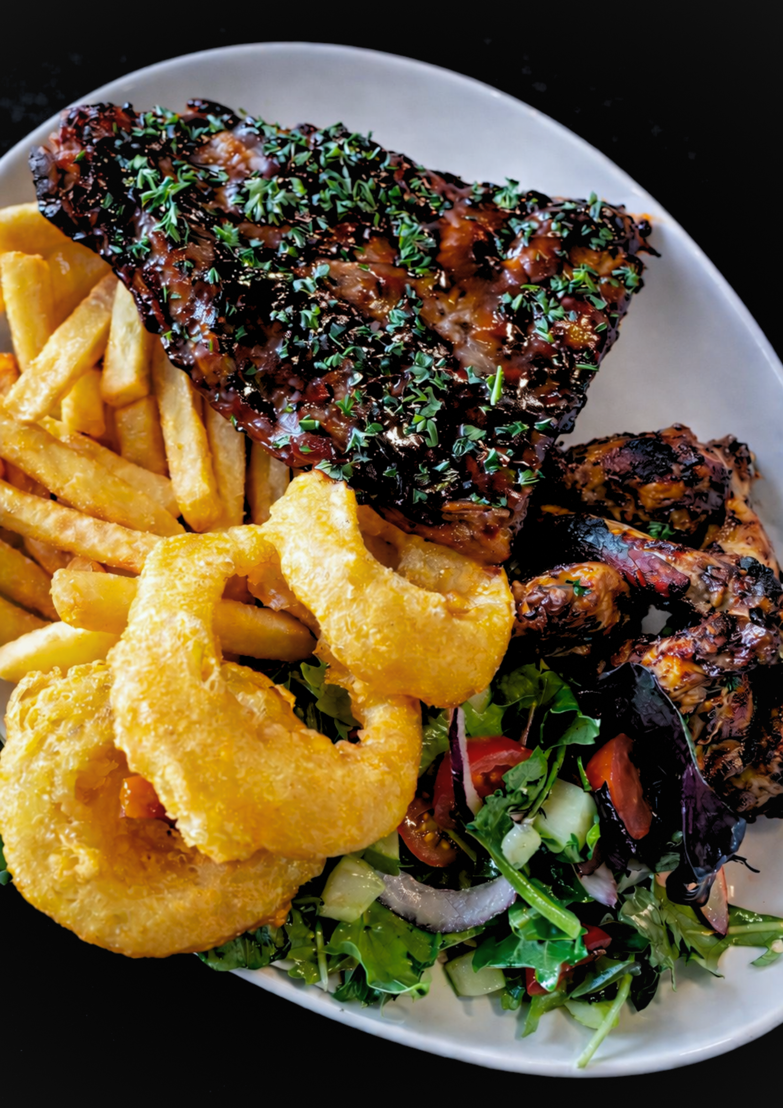 We’re serving up your spring favourites during the week to keep you cosy and satisfied. Whether you’re team battered or grilled, our fish and chips won’t disappoint. Craving something hearty? Our 200g porterhouse with chips and salad. Or warm things up with a bowl of red curry prawns, served with rice and poppadams.